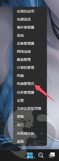 点击 Windows 开始菜单 - 点击 终端管理员(Windows PowerShell [管理员])